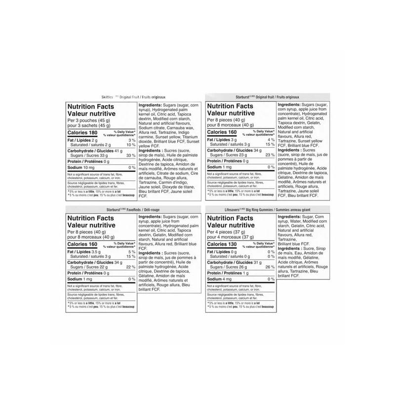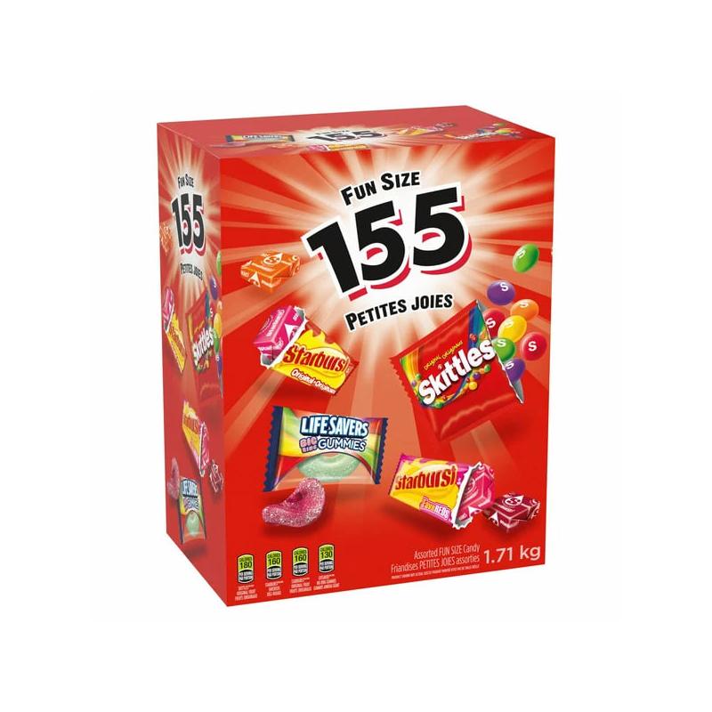 155 bonbons; Emballés individuellement ; Contient des saveurs amusantes et imprévisibles à chaque bouchée ; Skittles original, Starburst original, Straburst favereds, LifeSavers big ring gummies