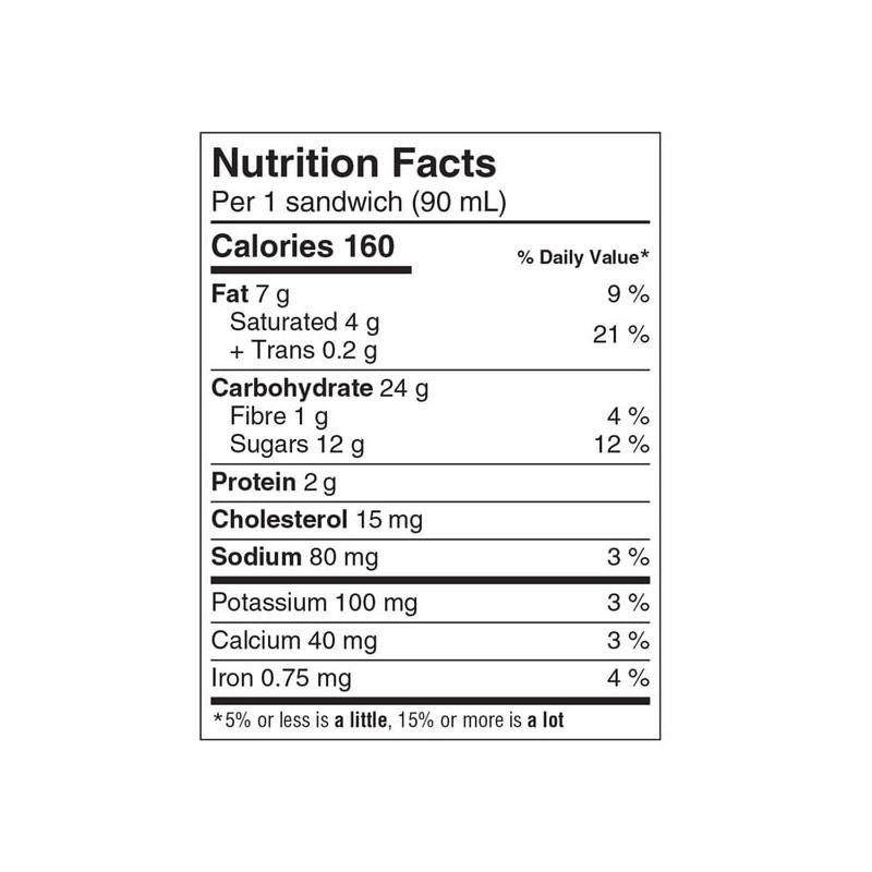 Biscuit au beurre : Farine de blé enrichie, sucre, beurre, bicarbonate de sodium, sel, arôme artificiel, lécithine de soya.
