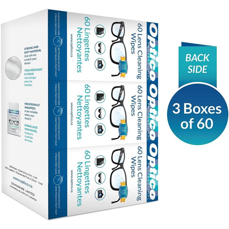 1 boîte 60 lingettes par boîte Pré-humidifié Nettoie les revêtements anti-reflets, anti-rayures et tout autre revêtement protecteur Nettoie l'électronique délicate sans affecter la réactivité Nettoyage en une étape sans tracas Contient une formule à base d'eau avec de l'alcool isopropylique